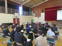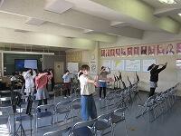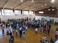 体育館と武道場に分かれて、「パーテーションの組み立て」を行いました。ワンタッチ式のものです。「簡易ベッド」も組み立てました。今回の訓練は、松葉中学校が会場でしたが、本校や松二小でも同様な「避難所開設訓練」の実施が必要となります。