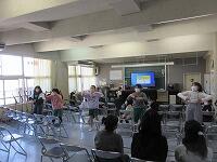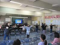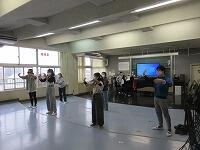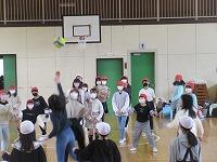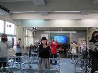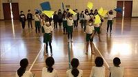 はじめは、斉唱の「スクールライフはエンジョイしなくちゃ!」です。曲に合わせて,踊っています。