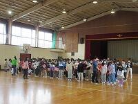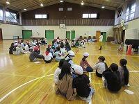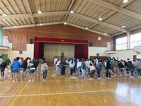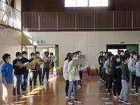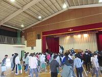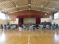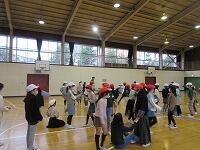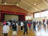 今日は、放課後、体育館で吹奏楽部の『お別れレク大会』を行いました。吹奏楽部員がみんな集まって、6年生との思い出に『お別れレク』を楽しみました。レクは、全部で3つ行いました。