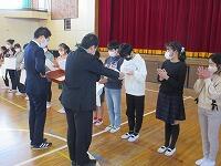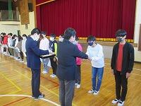 内藤先生から1年間を振り返って、話がありました。「今年度は、市内陸上競技大会、柏駅伝大会と大きな大会に参加することができました。1年間、頑張って練習をすることができました。」