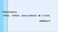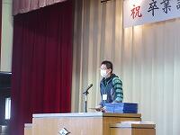 卒業生の皆さん、御卒業おめでとうございます。中学校へ行っても目標を持って、元気に活躍してください。応援しています。