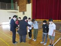 運動部を担当していた先生方へのあいさつです。「先生たちも、みんなが頑張って練習していたからこそ、その姿に応えようと頑張って指導してきました。」