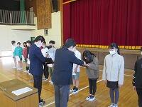 1・2校時は、学級活動の時間で、クラスごとに担任が、子どもたち一人一人に「通知票」を渡しました。この1年間を振り返ると、できるようになったことがたくさん増えました。