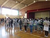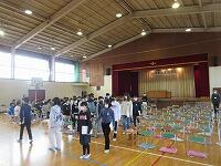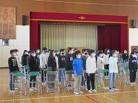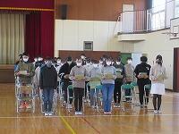 今日は、『卒業式予行練習』を行いました。卒業までいよいよ「あと3日」。17日の本番と同じように、進めていく練習です。本番でしっかりとできるように、一つ一つ細かい所まで、チェックしました。昨年度は、会場を体育館と校庭に分けた2部構成でしたが、今年度は、従来通り体育館で式の全てを実施します。