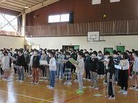 先週の10日(金)に、体育館で特設クラブ活動の『運動部解散式』がありました。今年度、1年間の運動部の活動が、終了となります。コロナ禍の活動で、いろいろと制限されていましたが、運動部全員で限られた時間を有効に活用し、一人一人が目標を持って、一生懸命練習してきました。