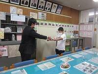 全校を代表して、6年生の給食委員が、調理員さんに感謝の気持ちを「お礼のメッセージ」として届けました。「メッセージ」を受け取った調理員さんは、涙ながらにとても喜んでいました。「大事に飾っておきます。」「献立は、何がおいしかったですか?」と聞かれ、子どもたちは、「和え物です。」、「すまし汁です。」、「ユーリンチーです。」等々・・・答えていました。