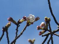 今日は、風もなくボカボカした陽気で穏やかな一日でした。昨日、東京で桜の開花発表がありましたが、本校の桜も、ちらほら咲き始めました。第三昇降口の所の桜の木です。