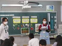 今日は、3年生が『食育学習』を行いました。指導者は、栄養教諭の加藤先生です。今回は、「野菜のパワーを知って野菜を食べよう!」という内容です。「野菜のパワー」について学びました。