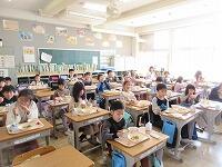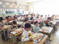 6年生にとっては、今日が小学校での『最後の給食』でした。「おいしい!」といって、『最後の給食』に感謝しながら食べている様子でした。6年生は、この6年間で身体だけでなく、心も大きくなりました。「給食の力」もかなり大きいと思います。「松一小の6年間の給食」は、どうでしたか? 残さずに食べることができましたか?