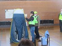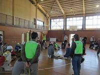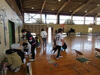 体育館と武道場に分かれて、「パーテーションの組み立て」を行いました。ワンタッチ式のものです。「簡易ベッド」も組み立てました。今回の訓練は、松葉中学校が会場でしたが、本校や松二小でも同様な「避難所開設訓練」の実施が必要となります。