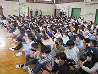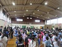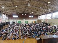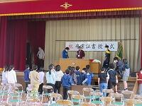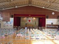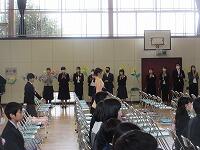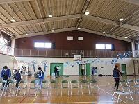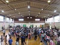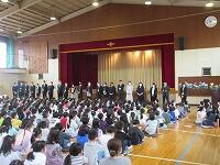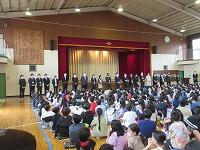 最後は、「校歌斉唱」です。6年生がいない体育館の後方は、なんとなく寂しげな様子でしたが、みんな元気よく校歌を歌いました。