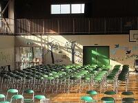 会場の準備は、すっかり整いました。あとは、本番を待つだけです。6年生の皆さん、今日は明日の本番のために、ゆっくり休んでくださいね。明日は、・・・「最後の授業」です。