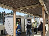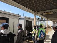 「簡易トイレの組み立て」の様子です。「災害用備蓄倉庫」から、必要なものを運びます。