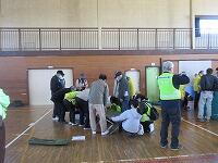 昨日、松葉中学校にて『松葉町避難訓練』が行われました。今回は、「災害時の避難所開設訓練」です。前半は、「AEDの操作による心肺蘇生法」の研修を、後半は、「簡易トイレの組み立て確認」と「パーテーションの組立」を行いました。