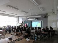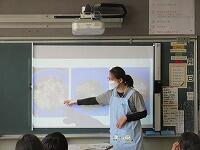 これは、給食室から出る「食べ物のごみ」です。「これは何かわかりますか。」「キャベツの芯」や「外側の葉」の部分。「玉ねぎの皮」などです。子どもたちは、映像に見入っていました。