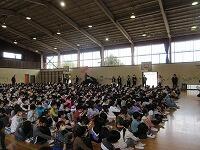 卒業生は、胸を張って立派に巣立っていきました。もう一度、体育館に戻って記念写真を撮りました。