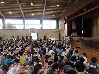 3校時は、『表彰』と『令和4年度の修了式』を行いました。今回は、3年ぶりに体育館で行いました。全校児童が体育館に集まるのは、しばらくぶりです。子どもたちは、慣れていなかったのか、きょろきょろとしていました。