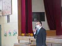 次に「春休みの生活」について、生徒指導主任の川原先生は、「春休みの生活のルールを守りましょう」と子どもたちに話しました。
