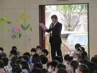 卒業生の皆さん、御卒業おめでとうございます。中学校へ行っても目標を持って、元気に活躍してください。応援しています。