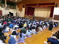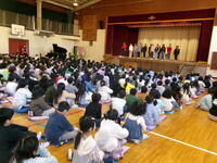 7日(水)、家庭や地域で楽しい時間を過ごしてきた子供たちが、体育館に集まりました。