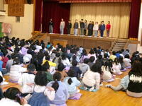2月は、全校朝礼に続いて、児童会役員の引継ぎ式を行いました。