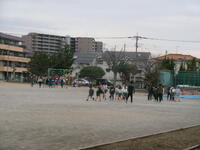 校庭では、短縄跳びや長縄跳びの練習をしています。