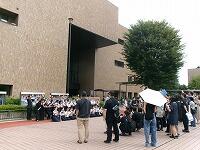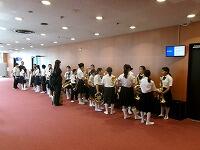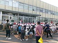 保護者や卒業生、先生方の応援を受け、宇都宮市文化会館に向かいます。