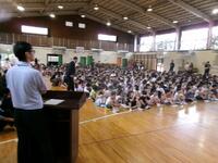 7日(水)、家庭や地域で楽しい時間を過ごしてきた子供たちが、体育館に集まりました。
