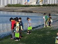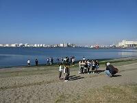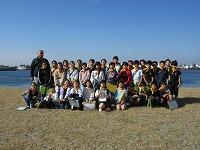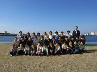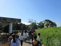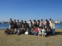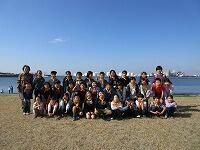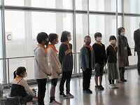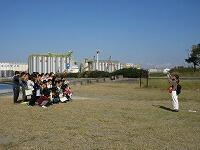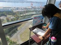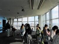 はじめに、1・2組が外で「千葉港」を背景に集合写真を撮りました。3・4組が先に「千葉ポートタワー」の見学をしました。