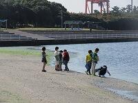 写真を撮った後は、少し、海辺で遊びました。砂浜に落ちている貝殻を集めていました。