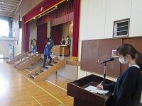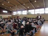 今日は、『卒業式予行練習』を行いました。卒業までいよいよ「あと3日」。17日の本番と同じように、進めていく練習です。本番でしっかりとできるように、一つ一つ細かい所まで、チェックしました。昨年度は、会場を体育館と校庭に分けた2部構成でしたが、今年度は、従来通り体育館で式の全てを実施します。