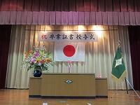 「卒業証書授与」です。笑顔で「卒業証書」を受け取っていました。担任の呼名に対して、元気な返事ができました。