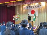 「開式の言葉」、「国歌斉唱」と「校歌斉唱」の様子です。