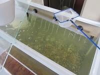 「松葉一小」と書かれた「放流用のバケツ」に全匹移しました。今まで育てていた水槽は、・・・、空っぽです。