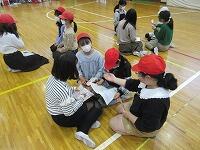次に、「しっぽ取り」をしました。しっぽは、赤白帽子です。