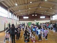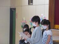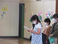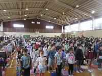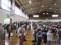 最後は、「校歌斉唱」です。6年生がいない体育館の後方は、なんとなく寂しげな様子でしたが、みんな元気よく校歌を歌いました。