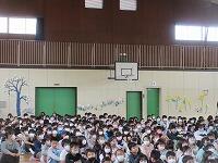 3校時は、『表彰』と『令和4年度の修了式』を行いました。今回は、3年ぶりに体育館で行いました。全校児童が体育館に集まるのは、しばらくぶりです。子どもたちは、慣れていなかったのか、きょろきょろとしていました。