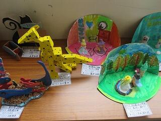 第一校舎の職員室前の廊下に、「柏っ子造形展」に出品した作品を展示&掲示しています。どれも子どもたちの力作ばかりです。