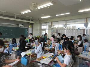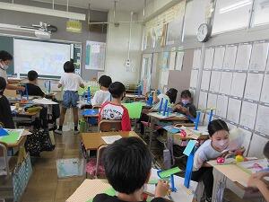 5年生は、図工で『コロがるくんの旅』に取り組んでいます。高いところからビー玉を転がしていきます。コース作りがポイントになります。設計図をもとに頑丈で美しいコースを作ります。