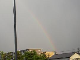 夕方、突然の雨で、びっくりしました。でも、校庭を見ると大きな虹ができていました。何かいいことがありそうですね。