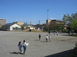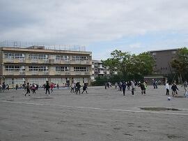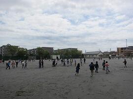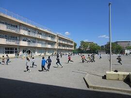 今日は、いい天気です。校庭では、体育の授業や屋外での観察学習も行われています。