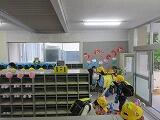 今日は、1年生の登校3日目。朝、6年生のお兄さんお姉さんが、昇降口のところで、教室まで案内しています。「ここだよ。」「靴はちゃんとそろえてね。」「できているね。」
