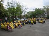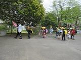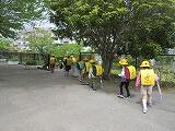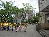 昨日同様、最初の下校は、コースごとにまとまって帰ります。下校支援の職員が、途中まで一緒に歩いて行きます。