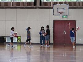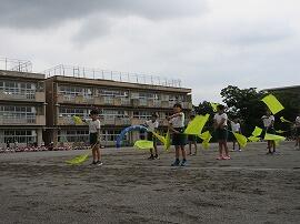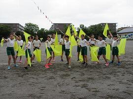 6年生のフラッグを使った「表現運動・ONE」の様子です。
