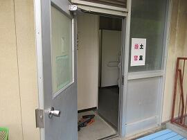 保健係は、保護者が当日使用する体育館のトイレを掃除しています。