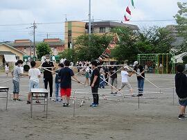 万国旗係は、万国旗の準備です。全部で3本張ります。