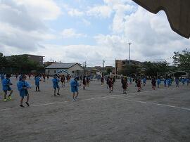 4年生の「表現運動・よっちょれよっちょれよっちょれや!」の様子です。
