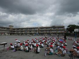 「閉会式」を終了した後、しばらくすると昨日と同じように急に強い雨が降ってきました。今日は、雨が降る前に実施できてよかったです。ホッとしました。