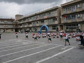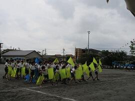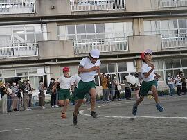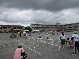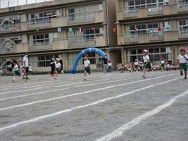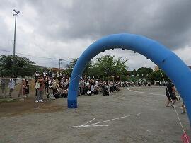 第三部は、高学年、5・6年生の「競技・発表」です。さすが高学年、とても力強い走り方です。でも、途中、残念ながら大雨が・・・。