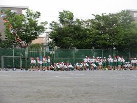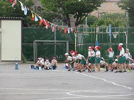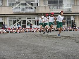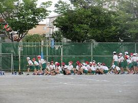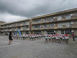 今日は、全校で、昨日も頑張っていた高学年を応援しました。